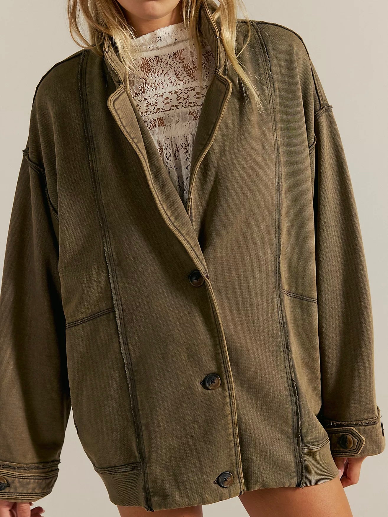 A cozy take on an elevated silhouette, this unique cardi from We The Free features blazer-inspired details like notched lapels and a single-breasted closure, all in a cotton fleece for unmatched comfort.