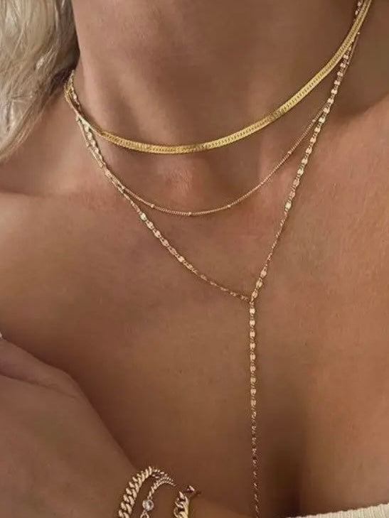 18K Plated Stainless Steel Tarnish-Free Station of Layered Y Necklace
