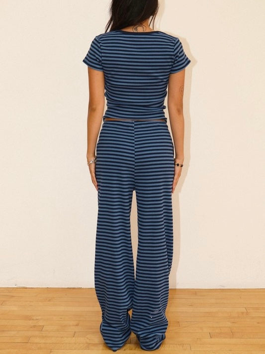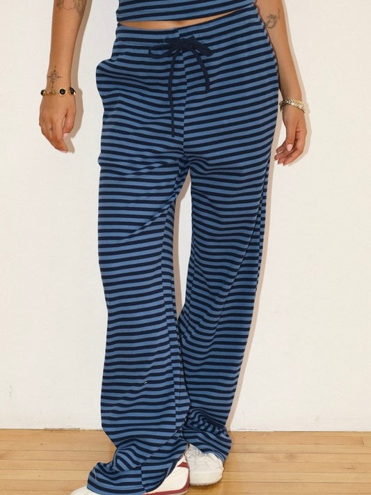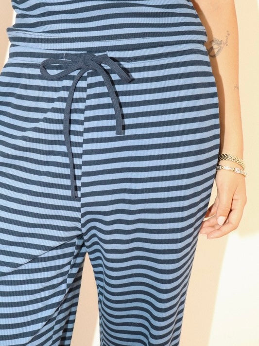 Bailey Rose Striped Knit Drawstring Pants Blue Jay