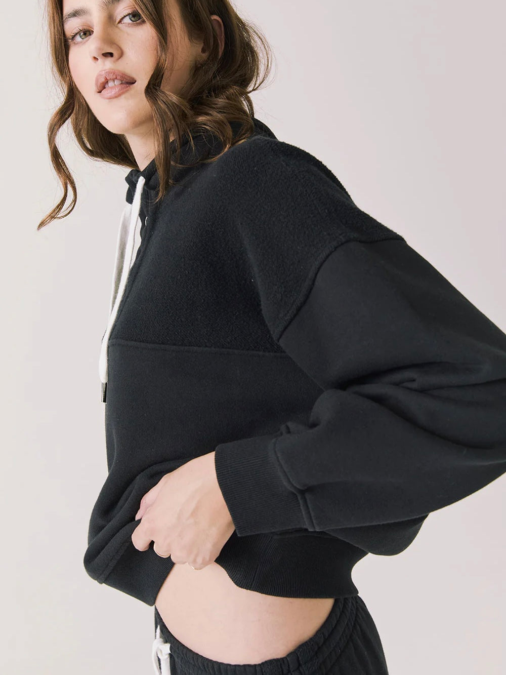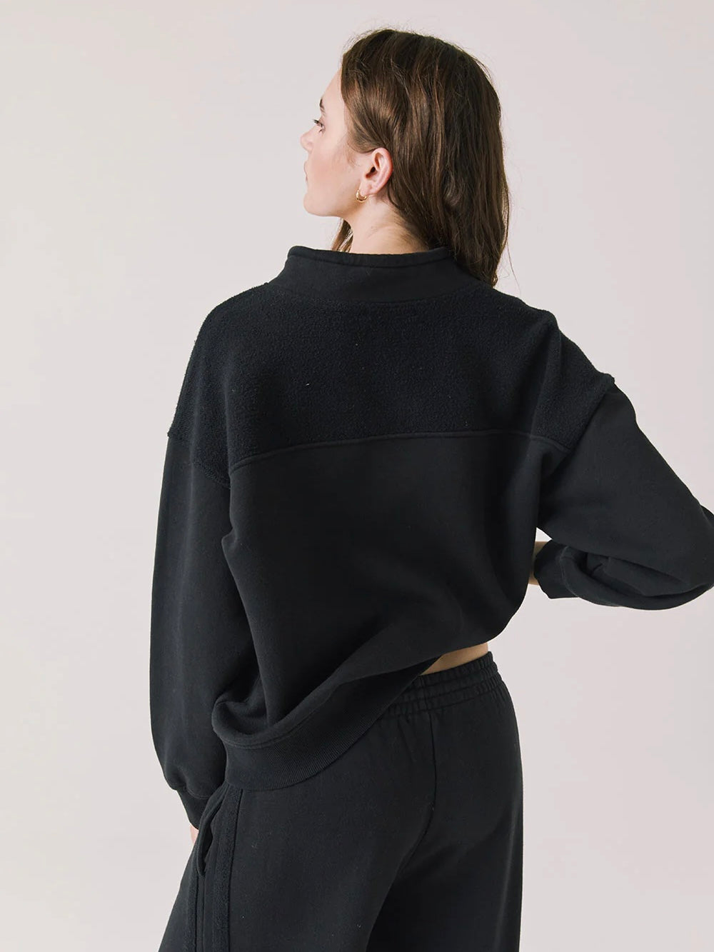 The City True Black Half Zip Pullover combines sporty, preppy style with cozy, effortless appeal.