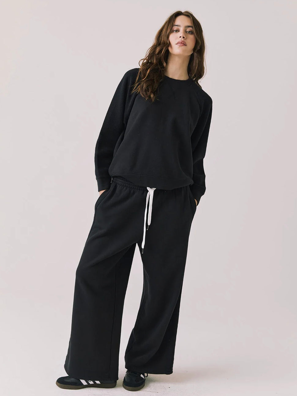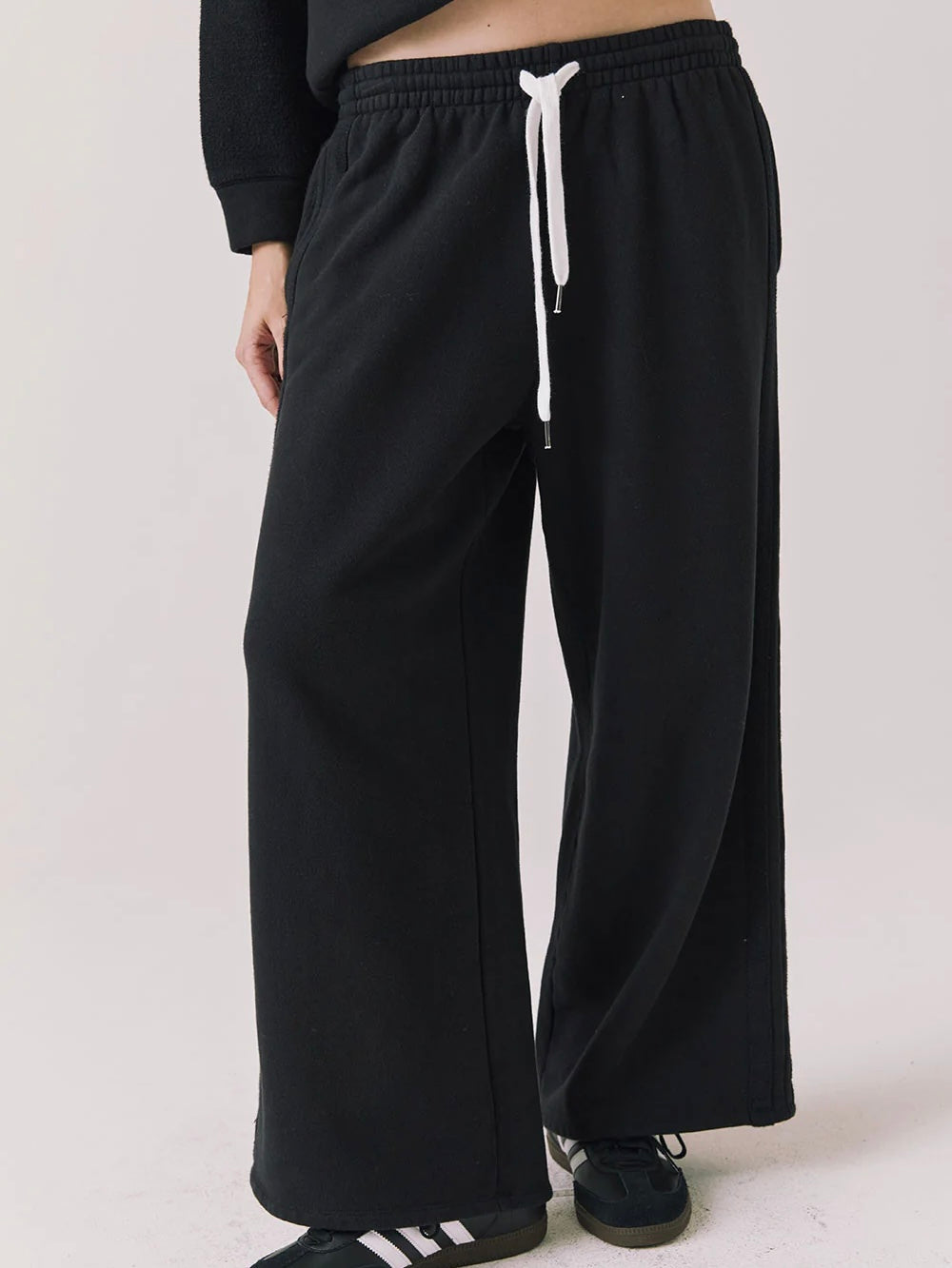 The Hazel True Black Joggers offer a flattering oversized, slouchy fit with an adjustable drawstring for personalized comfort.