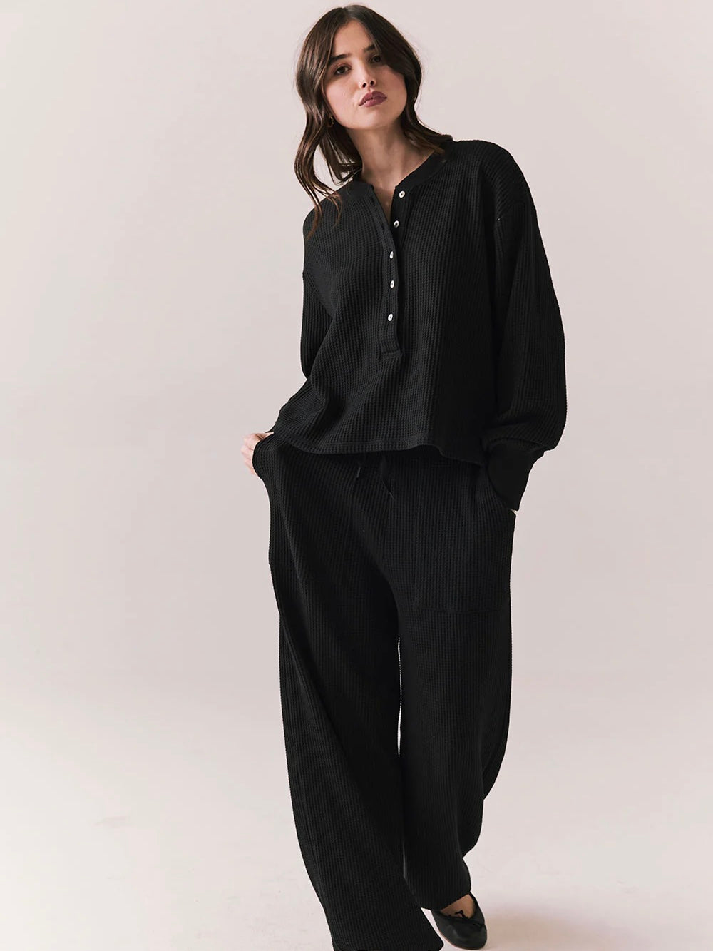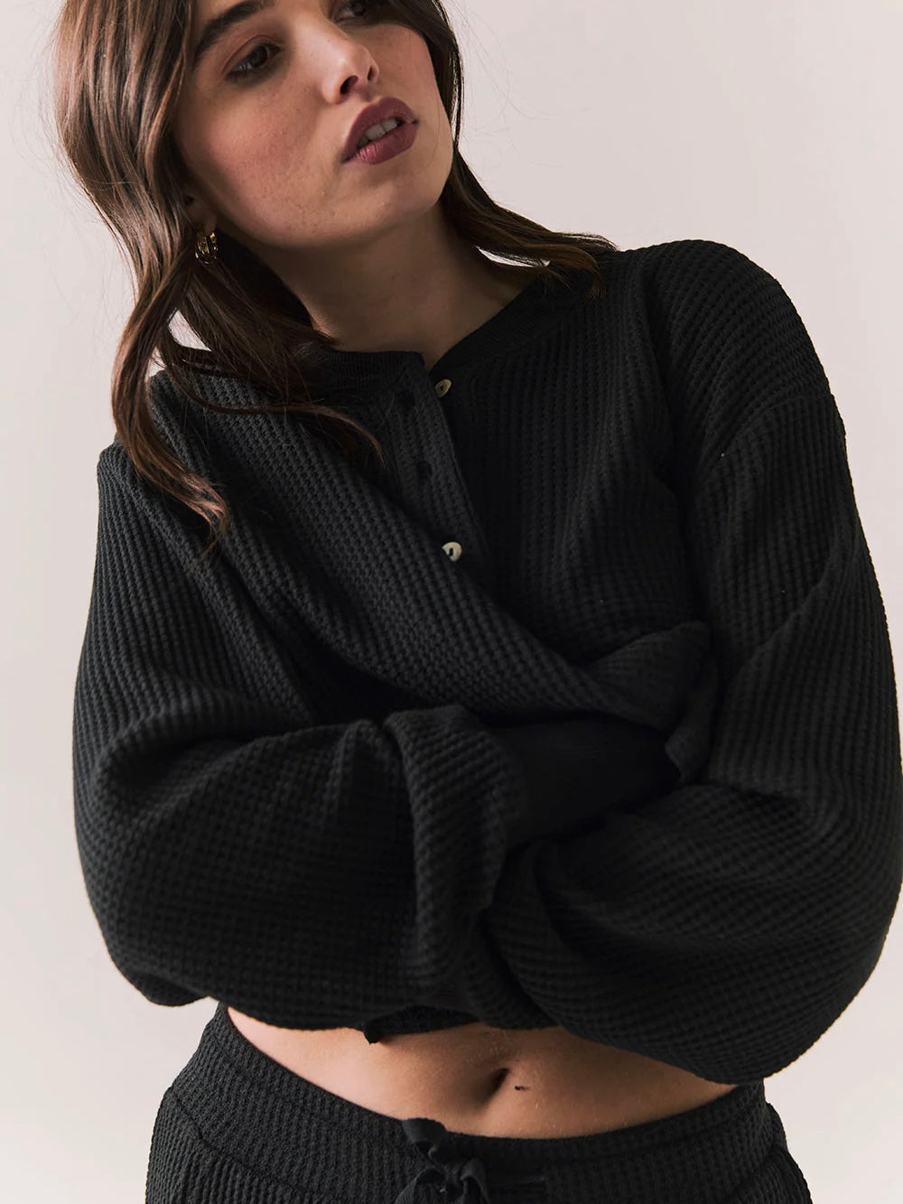 Chaser Thayne Black Long Sleeve – Cropped Thermal Henley Top