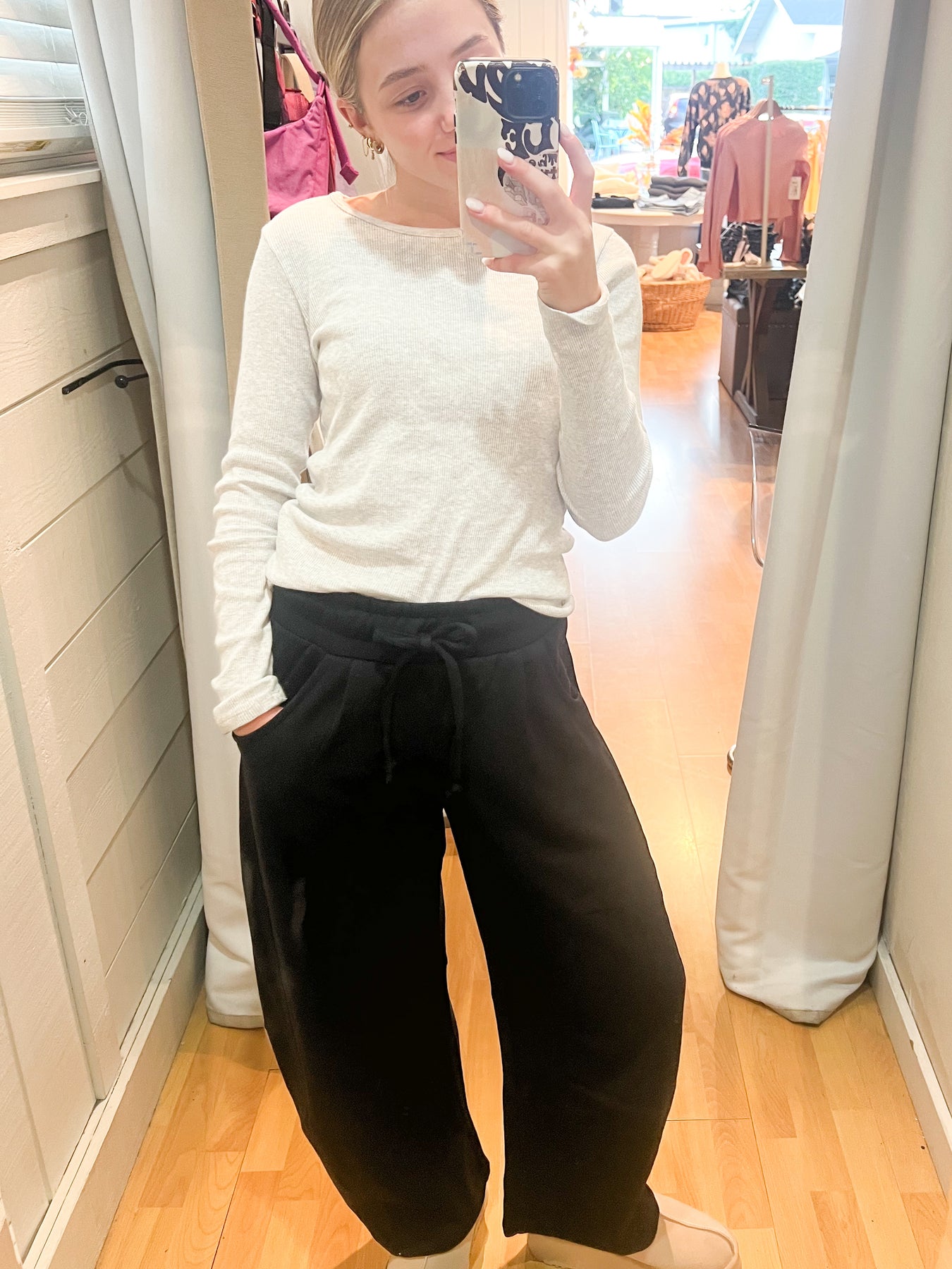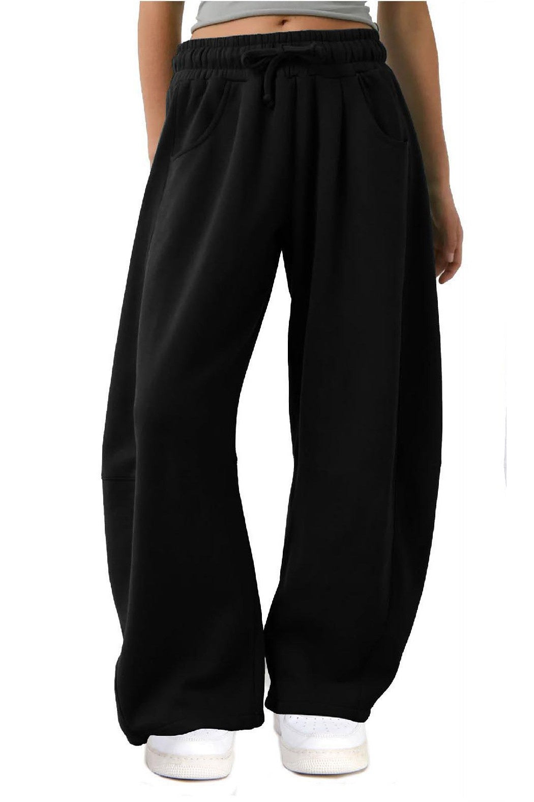 FLEECE BARREL LEG WAISTBAND SWEATPANTS Black