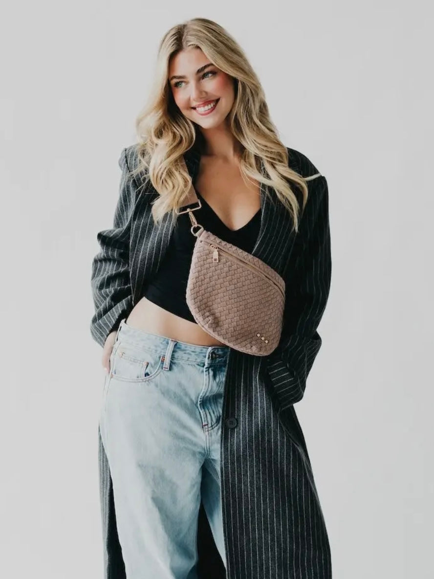 Pretty Simple Faux Suede Westlyn Woven Bum Bag Suede Primrose