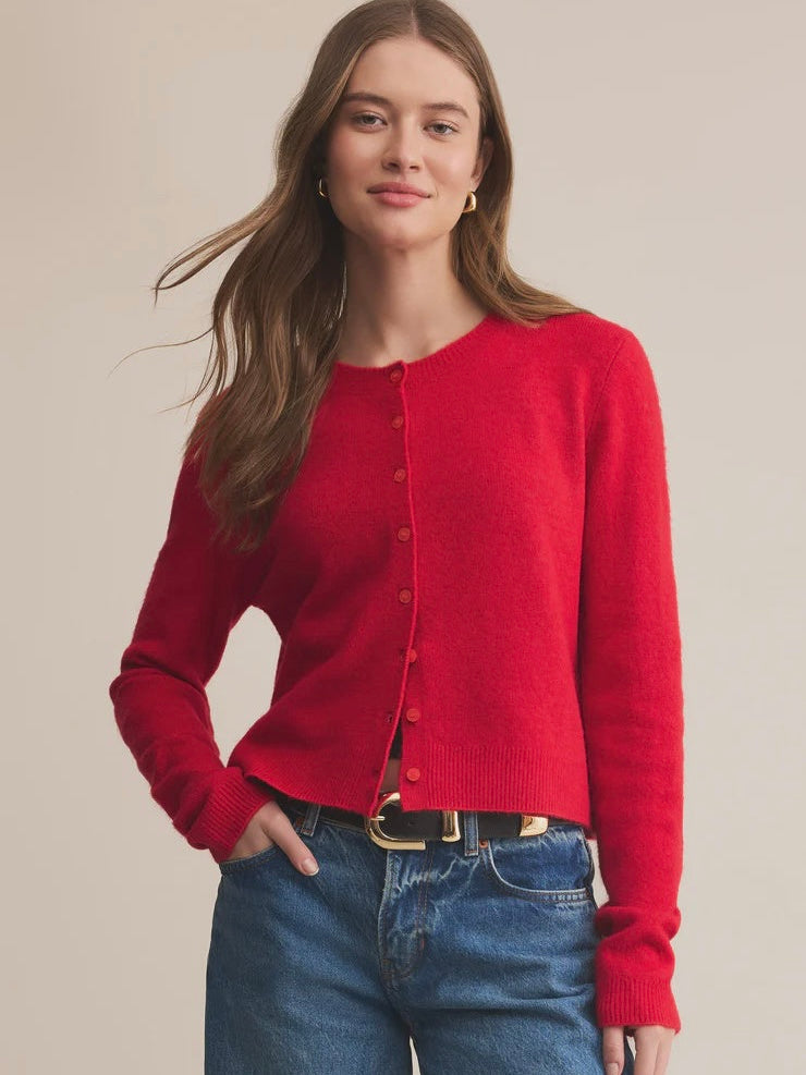 This relaxed crewneck cardigan is made from cozy sweater yarns with an easy button-up front that’s perfect for layering. Whether tossed over a tank or worn solo, it’s the ideal go-to for cozy, casual days.