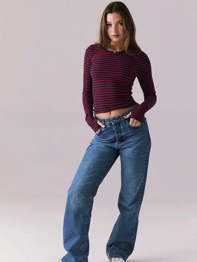 Chaser Moonlight Stripe Long Sleeve – Fitted Ribbed Top with Thumb Holes