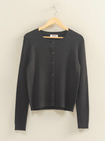 Crew Neck Long Sleeve Buttoned Cardigan Black