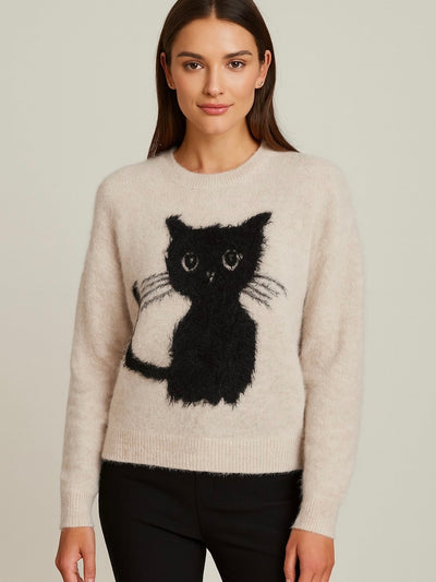 Debut Fuzzy Grey Black Kitten Sweater