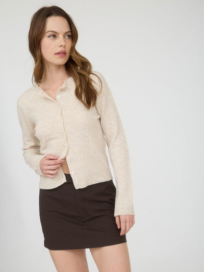 Round Neck Button Down Long Sleeve Cardigan Cream