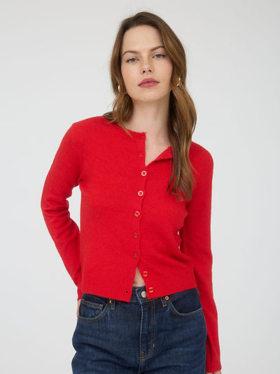Round Neck Button Down Long Sleeve Cardigan Bright Red