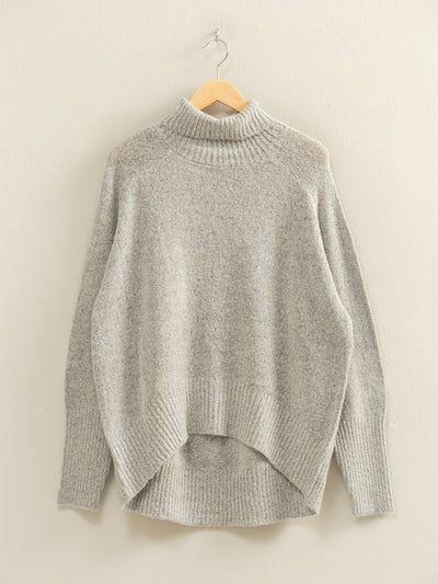 Oversized High Low Turtleneck Sweater Gray