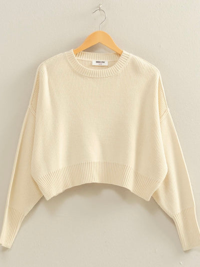 Ribbed Knit Oversized Cropped Sweater Cream