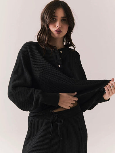 Chaser Thayne Black Long Sleeve – Cropped Thermal Henley Top