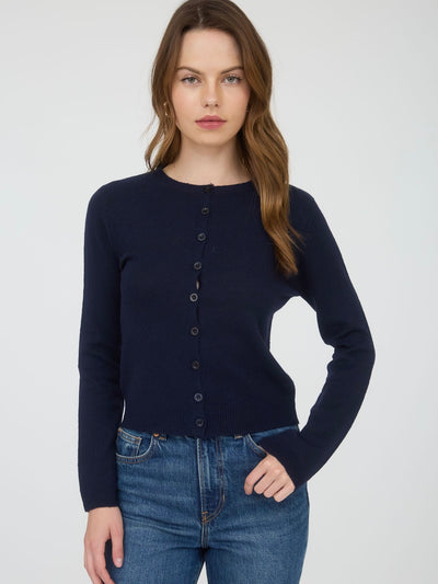 Round Neck Button Down Long Sleeve Cardigan Navy