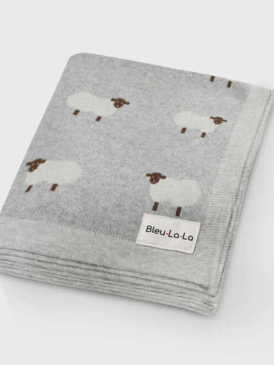 Bleu La La 100% Luxury Cotton Receiving Swaddle Baby Blanket - Sheep Grey