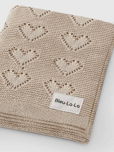 Bleu La La 100% Luxury Cotton Receiving Swaddle Baby Blanket - Heart Taupe