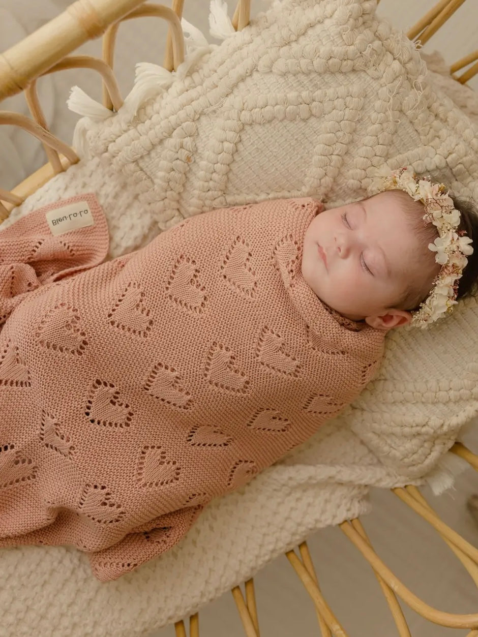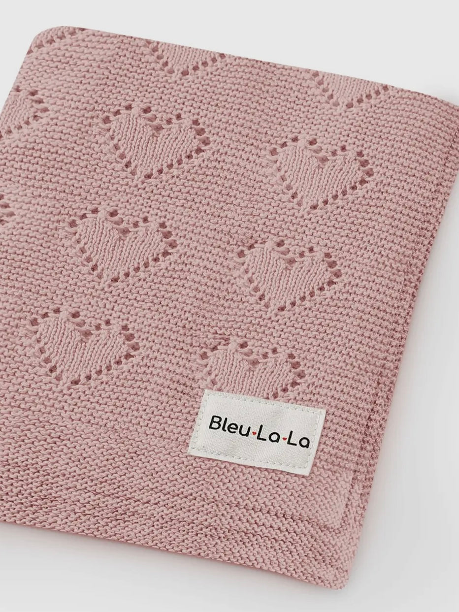 Bleu La La 100% Luxury Cotton Receiving Swaddle Baby Blanket - Heart Pink