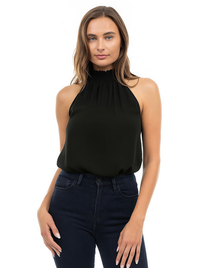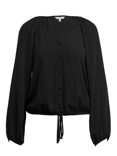 Long Sleeve Button Down Elasticized Waist Blouse Black