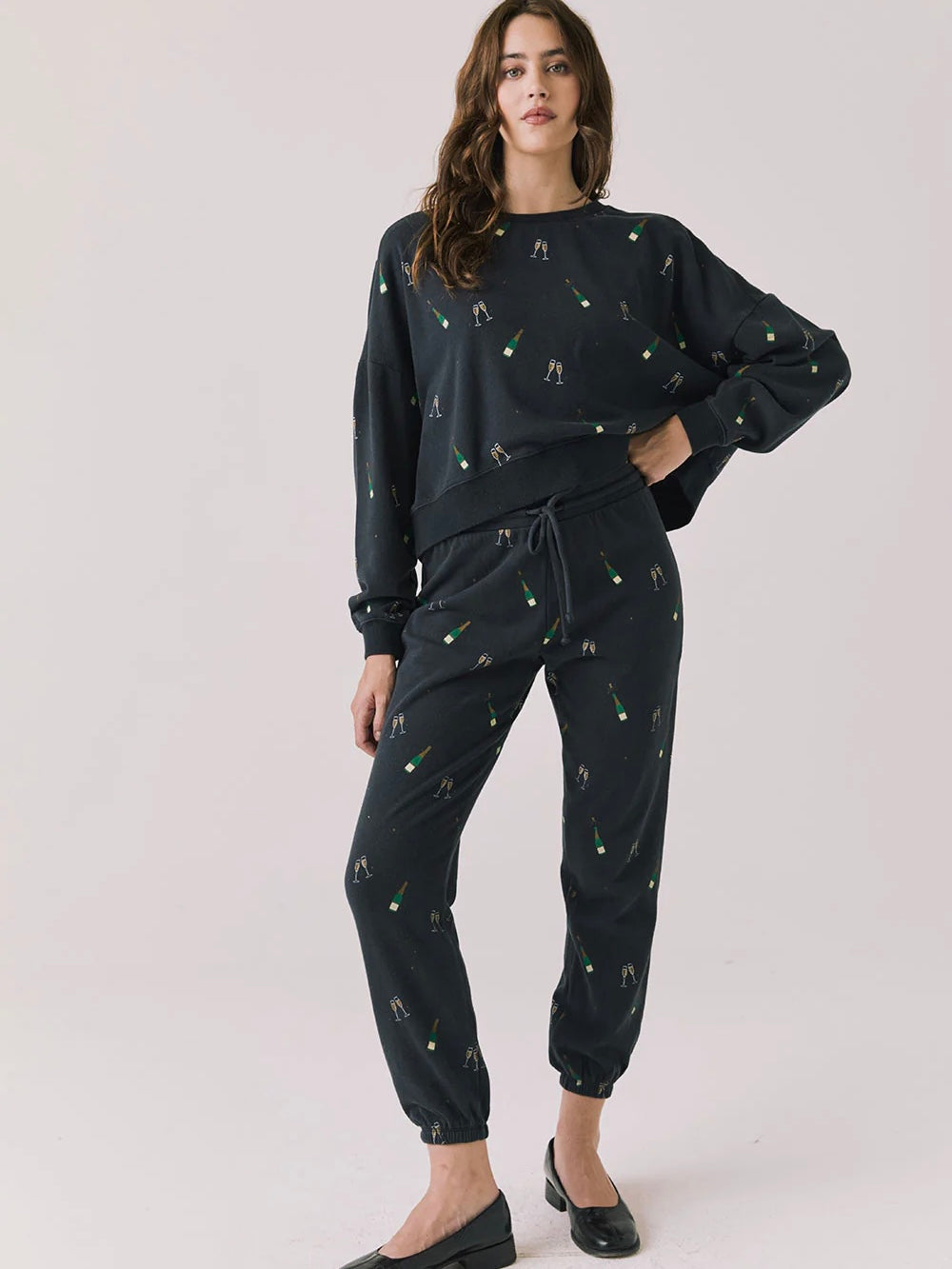 Adorned with a petite champagne coupe design, it pairs perfectly with our matching Champagne Party Joggers to create a sophisticated, coordinated ensemble.
